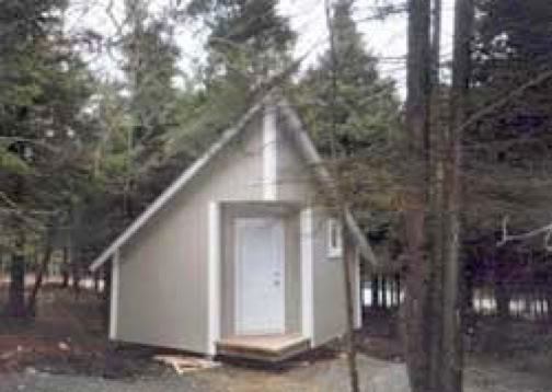 À l’écart du pavillon principal, dans le boisé, se trouvent 3 ermitages ou « poustinias » pour retrouver en solitaire une simplicité de vie. Chaque maisonnette renferme un lit, un poêle à bois, un bureau, une armoire en coin, une penderie, une lampe à l’huile et divers accessoires. Puisqu’on ne dispose dans les ermitages ni d’eau courante ni d’électricité, tout près, se trouve un pavillon de services offrant toilette, douche, nourriture et micro-ondes. Chaque personne voit à se préparer ses repas; un style frugal (sans viande, mais plutôt légumineuses, pâtes, soupes, fromages, fruits et légumes) est le propre des séjours en ermitage.